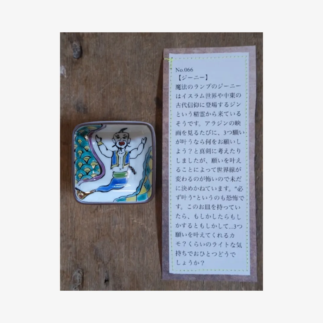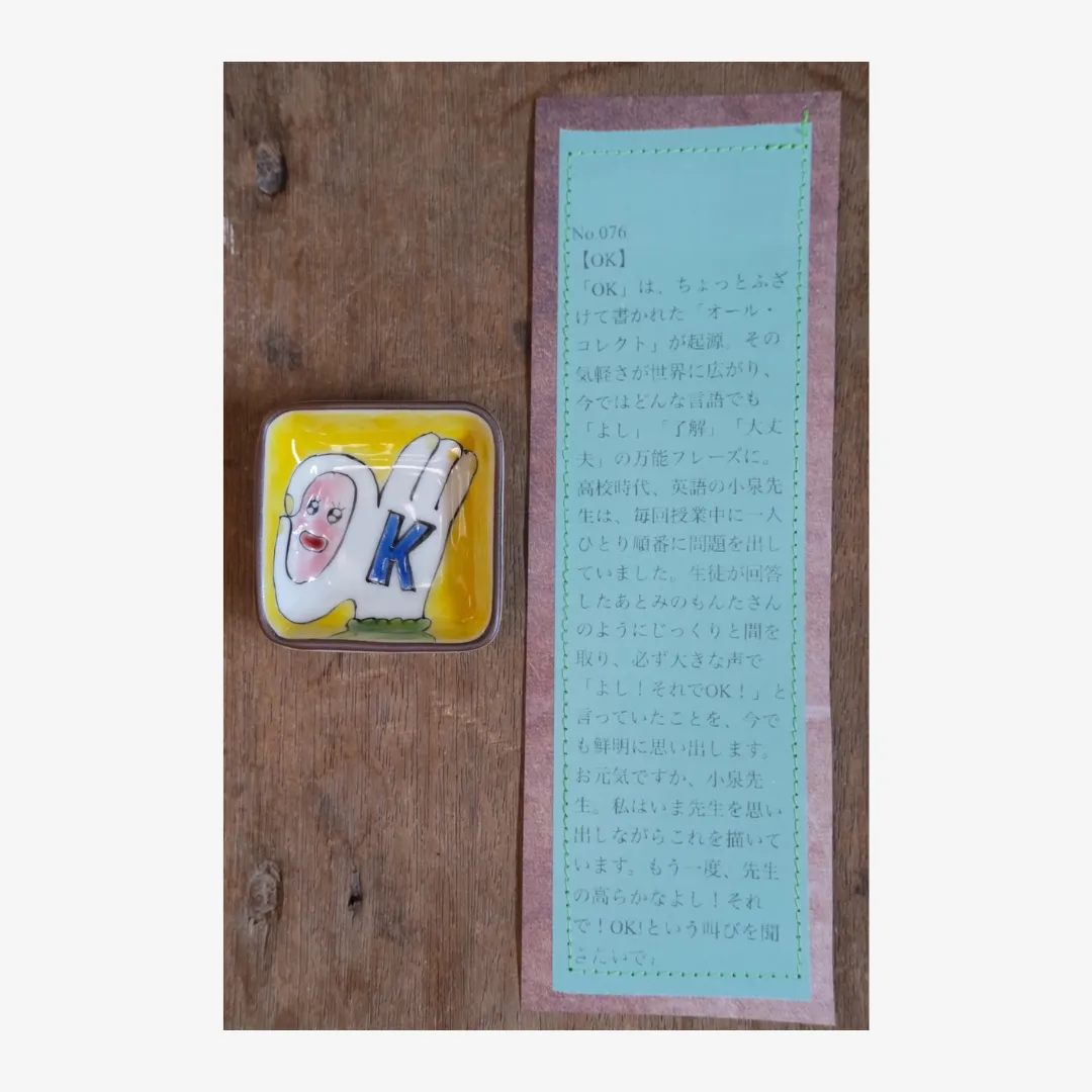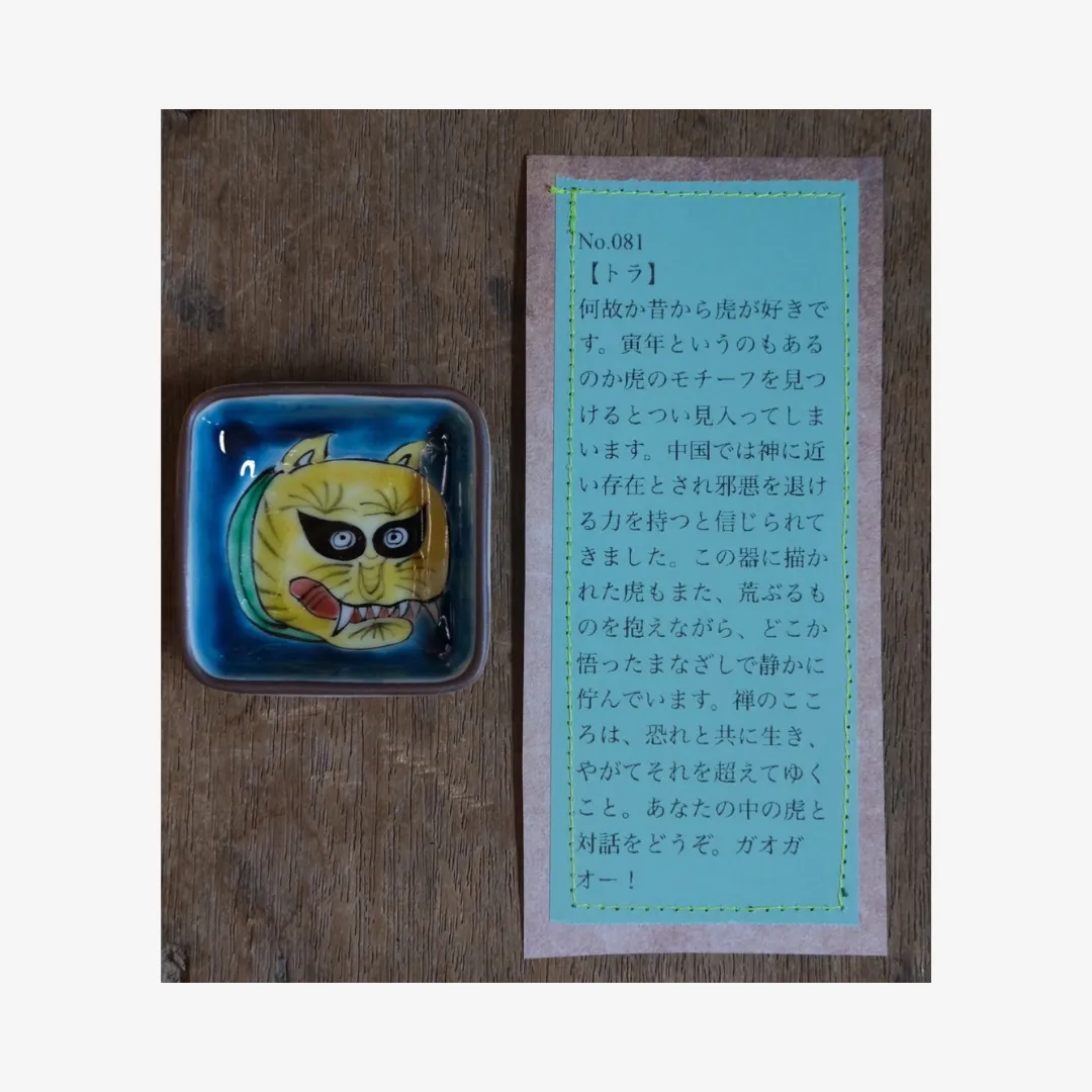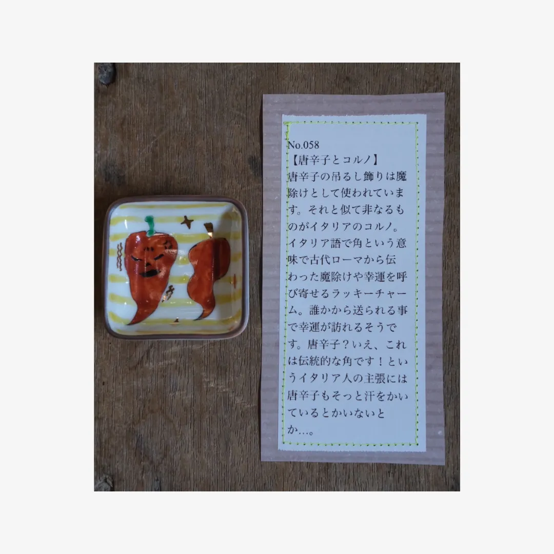 小林さんならではのユニークな絵付けと、それぞれに添えられた遊び心あふれる説明文もお楽しみください。