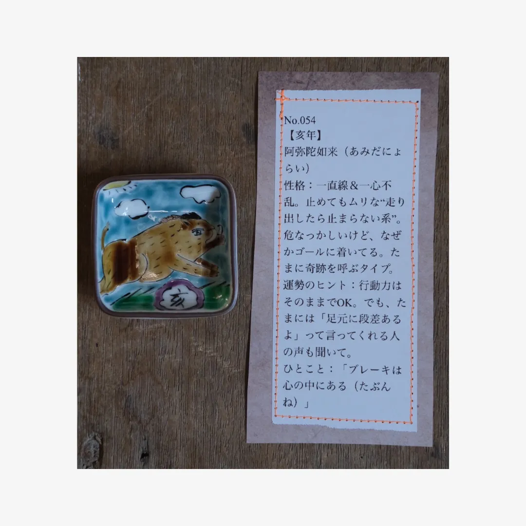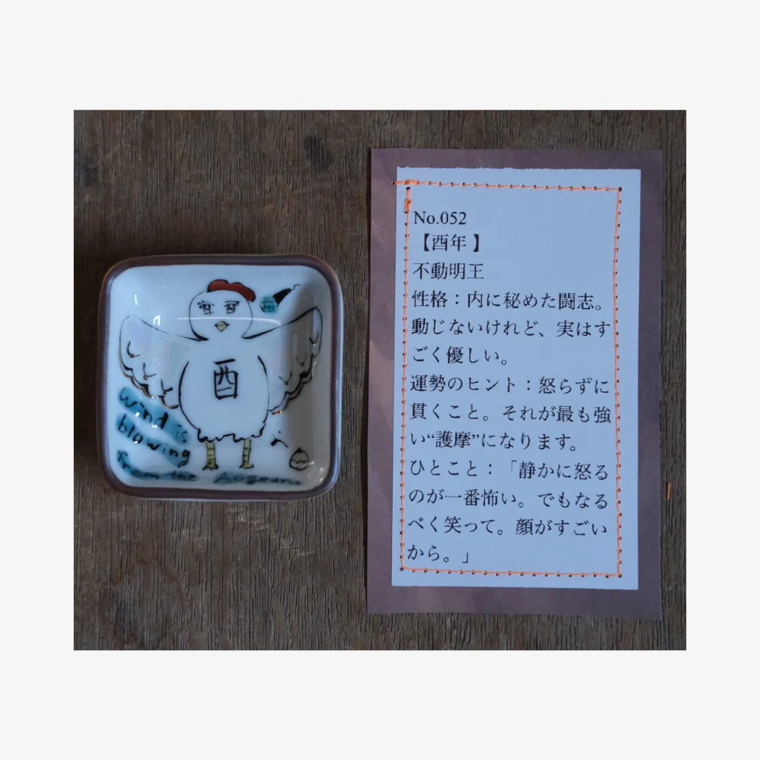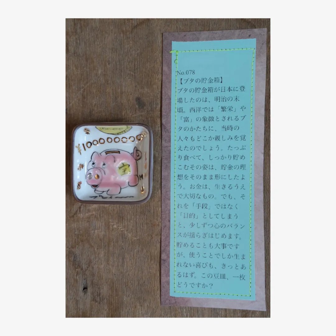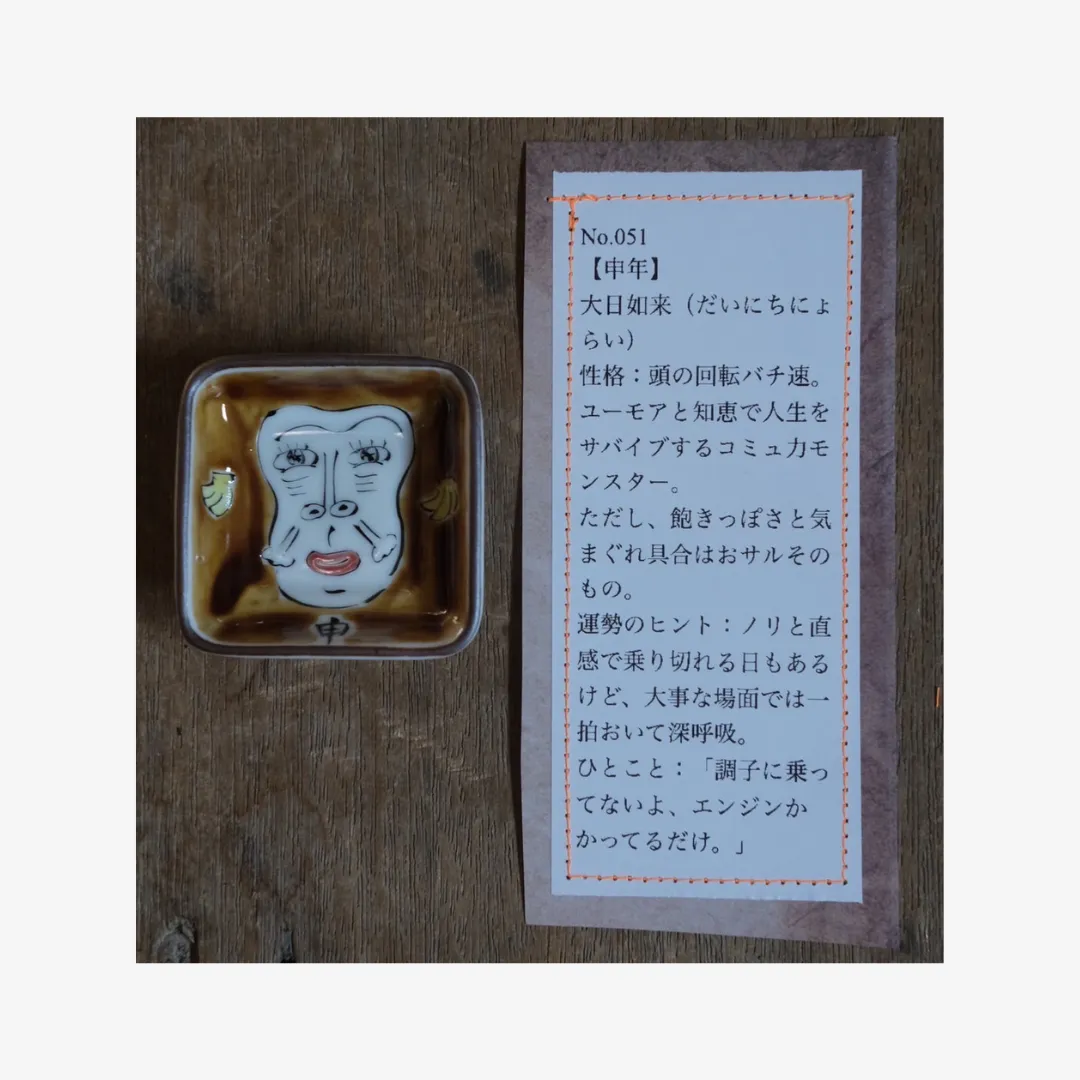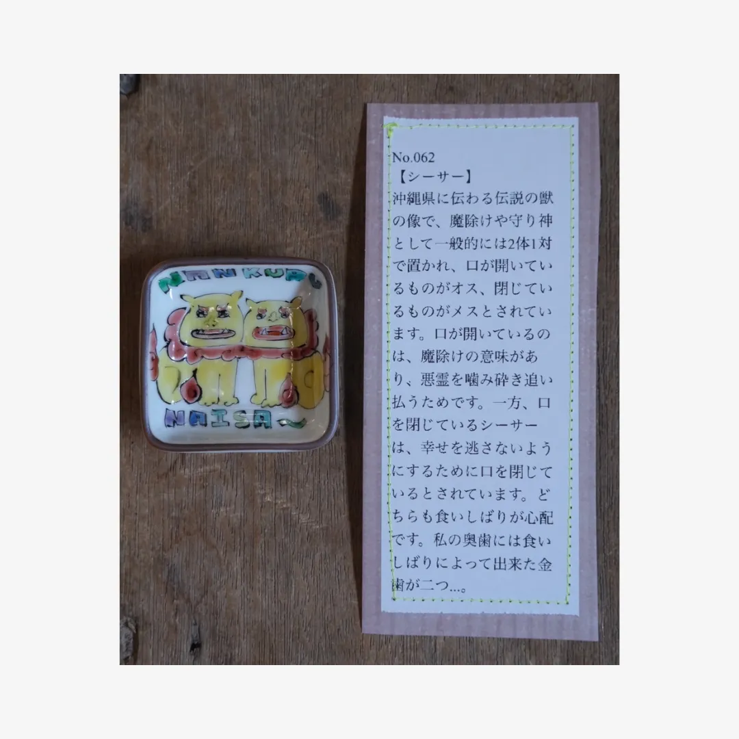 小林さんならではのユニークな絵付けと、それぞれに添えられた遊び心あふれる説明文もお楽しみください。